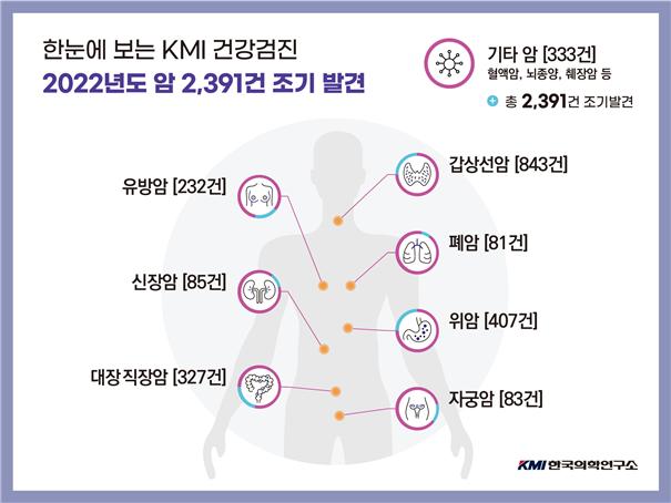 【후생신보】 KMI한국의학연구소(이사장 이상호, 이하 KMI)는 지난해 건강검진을 통해 총 2,391건의 암을 조기에 발견했다고 17일 밝혔다.