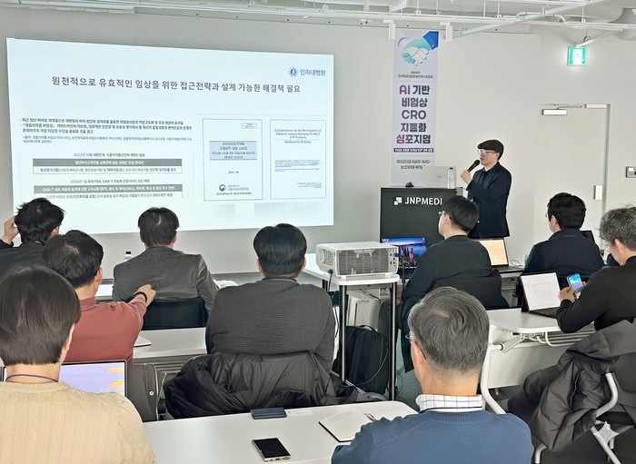 인하대병원은 지난 4일 인천 송도국제도시 포스코타워 메이븐홀에서 ‘AI 기반 비임상 CRO 자동화’를 주제로 한 심포지엄을 열고, 전임상 연구 전반에 걸친 AI 기술 활용 확대 방안을 논의했다고 6일 밝혔다. 이번 행사는 인하대병원 전임상평가센터가 주최하고 JNPMEDI가 후원했다.