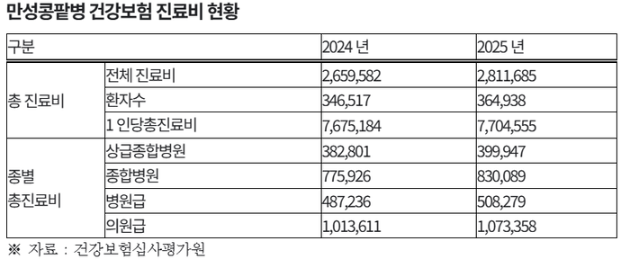![]() ▲ 단위(전체 진료비: 백만원 / 1인당 진료비: 원) |